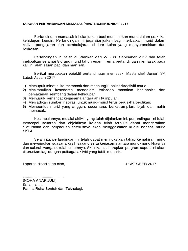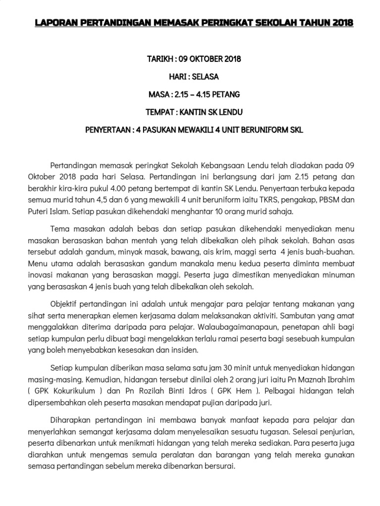 Laporan Pertandingan Memasak Pdf